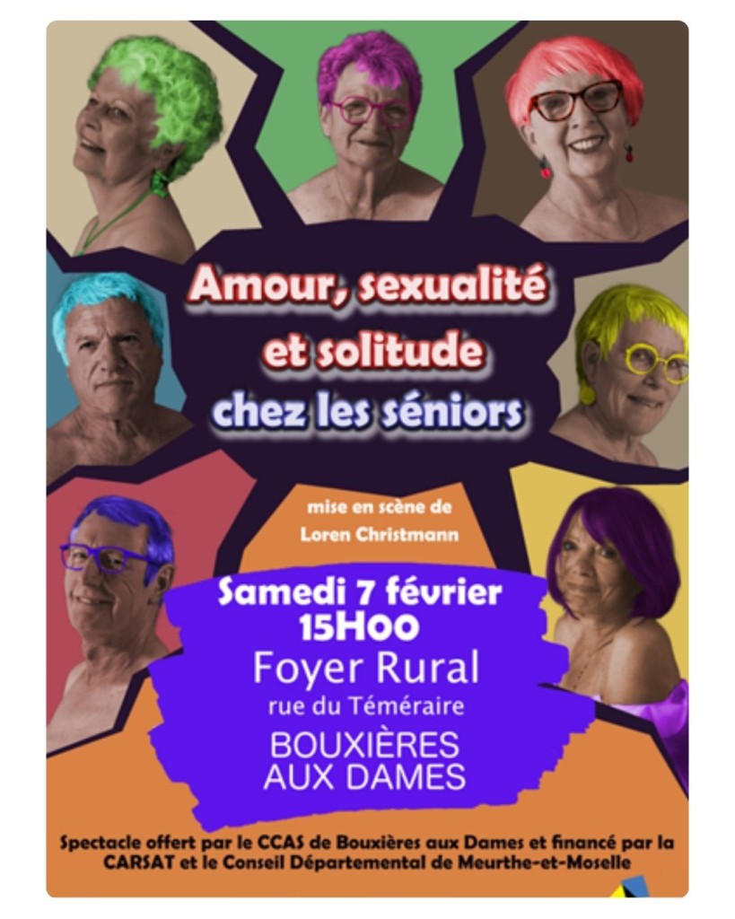 Rendez-vous le samedi 7 février au Foyer rural pour un spectacle sur le thème “Amour, sexualité et solitude chez les séniors.”